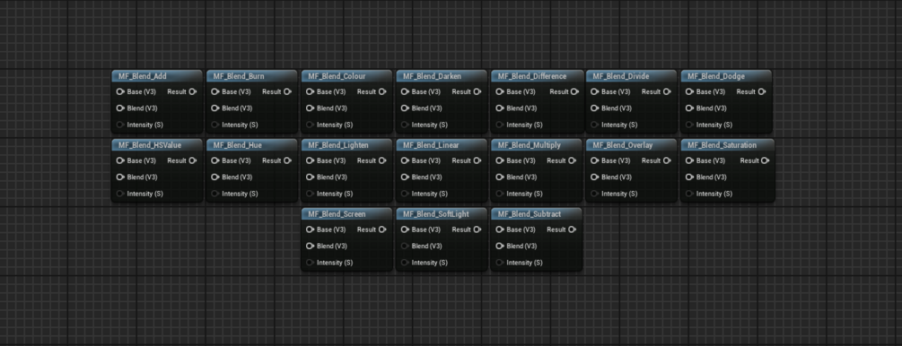 A bundle of Material Functions for UE5 (untested in UE4) that all blend two colours/textures together in various ways. Each method is based off Photoshop Layers/Blender's Mix node.